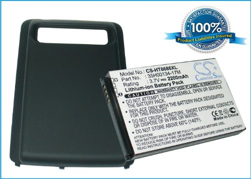 Cameron Sino CS-HT8686XL Extended Cell Phone Battery + Back Cover for HTC 7 Trophy / Spark T8686 - 2200 mAh - Retail Packaging