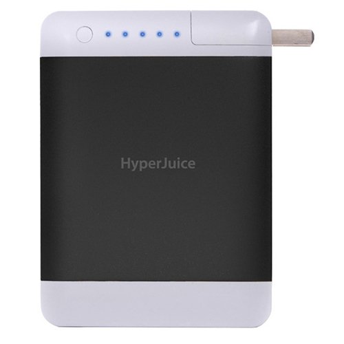 HyperJuice Plug 10,400mAh dual USB battery pack features 2 high power USB ports that can simultaneously charge 2 USB devices (even 2 iPads) at the same time. It also features a retractable wall plug for easy recharging from any electrical outlet.