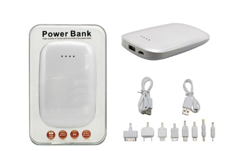 Afunta(tm) 5000mAh External Battery Pack Charger.Includes 7 Different DC Connectors,5V 1A USB Output.Fit for Android & Apple Device, Smart Phones, Tablets, PS Vita, GoPro; iPad mini, iPhone 5,4S,4,3G3, iPad; Samsung Galaxy S3 i9300, Galaxy Note 2; HTC Sensation, One X V One X V S, EVO 4G, Thunderbolt; Nokia Lumia 920 900 N9; Motorola Razr; LG Optimus. (White)