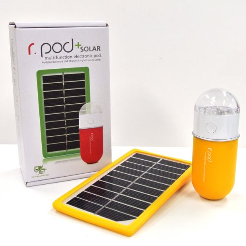 [r.Pod Yellow] Multifunction Portable Solar Battery Pack and USB Charger with ultra High Flux LED Light compatible with Apple iPhone 4S, iPhone 5, Amazon Kindle Fire and most smartphones