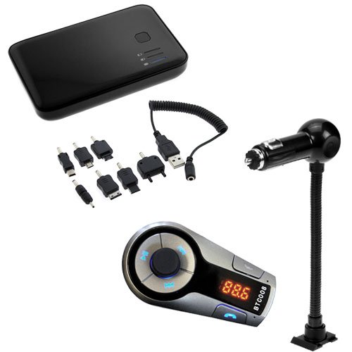 - Package Includes 1x EZOPower 2-Port External Battery + 1x Bluetooth Speakerphone Car Kit + FM transmitter