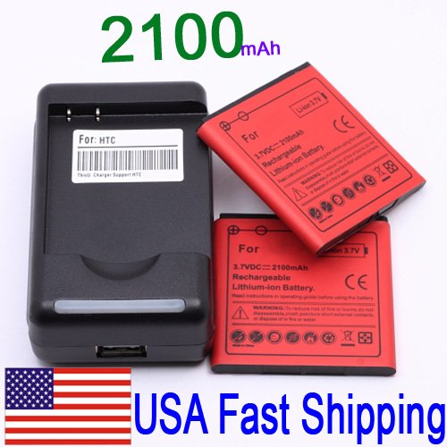 2x 2100mAh battery+Travel Charger 4 T-Mobile HTC Amaze 4G 4-G Ruby Smart Phone