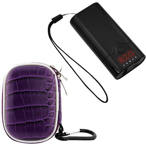 EZOPower 5200mAh Pocket Size External Battery Pack Power Bank Charger with LED Flashlight, Purple Protective EVA Case for Apple iPhone 5 4S 4 3G, 3GS , iPad mini, iPod Touch/ Nano Series: iTouch 5, Nano 7th and other Cellphone, MP3, NDS, GPS