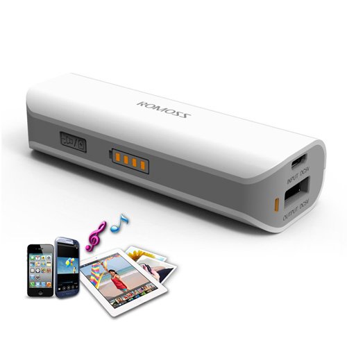 ROMOSS 2600mAh 5200mah 10400mah External Battery Pack Portable Charger Power bank Power Supply Station Emergency Backup Mobile Juice with LED Flashlight for All Smartphone, iPhone 5/4s/4/3GS/3G, iPod, iPad mini, tablet pc, HTC, Motorola, Samsung Galaxy, android cell phone, 5V 1A USB devices etc (White 2600mah)