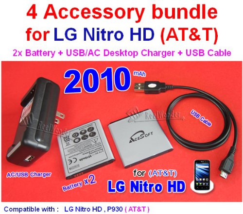 2X AceSoft 2010mAh High Power Battery Travel Dock Wall Desktop Home Charger Mirco USB Data Sync Cable FOR LG Nitro HD P930 P 930 AT&T Smart Phone USA