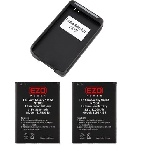 EZOPower 2-Pack Standard Lithium-Ion Replacement Battery - 3100mAh + USB Battery Charger for Samsung Galaxy Note II 2 N7100 (T-Mobile, Sprint, AT&T, Verizon) Android Smartphone